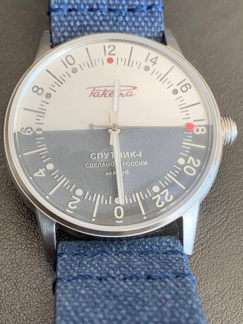 Well, I was very wrong about that. The truth is that the design of the dial was inspired by the Raketa Sputnik watch developed in 1974. This design was even approved by the construction bureau of Sputnik 1. So, all later editions of Sputnik-themed watches that follow this design were, in fact, copying Raketa—not the other way around.