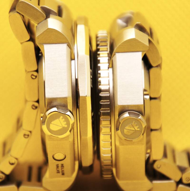 However, the crown side of the watches already reveals a key difference between them. Even though both have a stated water resistance of 300 meters, the Seawolf features a helium escape valve, while the Atlas does not.