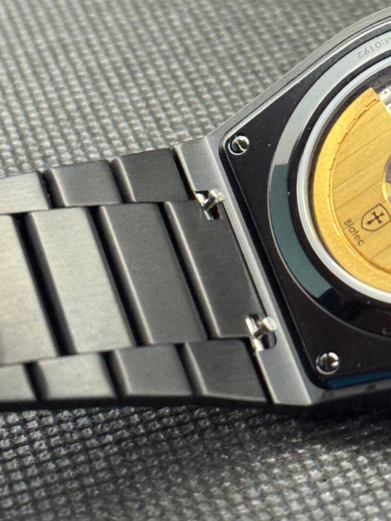 The butterfly extension is only partially coated, and when fully extended, the exposed untreated steel underneath shines through in a rather unattractive way. On top of that, the quick-release spring bars aren’t DLC-coated at all (even though the render images clearly suggest they should be). In addition I ask myself why a quick-release system is needed here. There are no additional straps offered and the quick-release system only gives it's full value when you want to change between straps often.