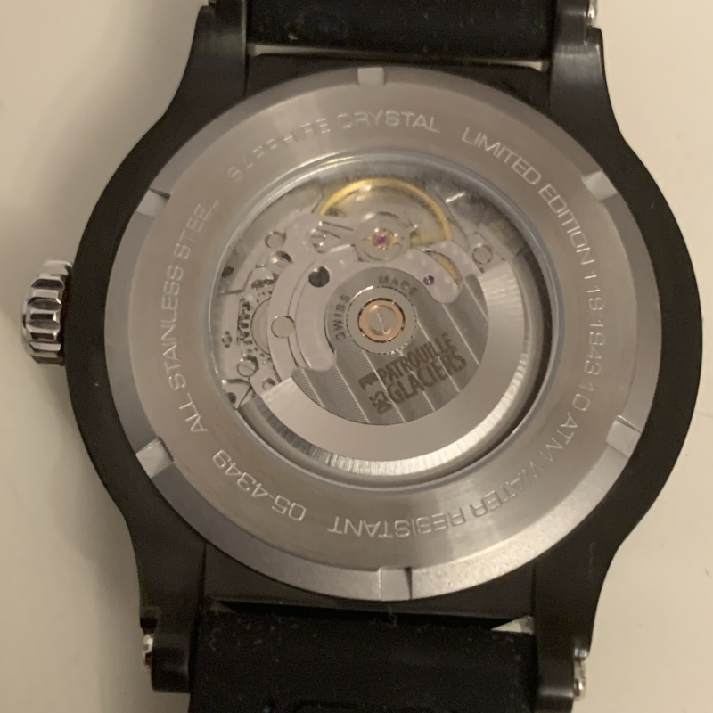 The declared water resistance is 10 ATM. It’s a limited edition of 1,943 pieces. I have no idea where this number comes from—my guess is it has something to do with the "Les Patrouille..." race.
