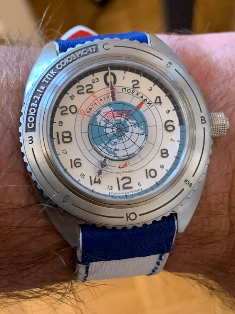 Interestingly, the booklet that comes with the Space Launcher claims that both cosmonauts were consulted on what features a space watch should have. According to Raketa, they both emphasized the same three things: robustness, reliability, and only one essential complication—a 24-hour display. This, they said, helps distinguish between day and night aboard the ISS, where the sun rises 16 times in a 24-hour period. That same 24-hour complication was also used in the Baikonur, which was developed under the guidance of another cosmonaut—so maybe there’s some truth to that claim.