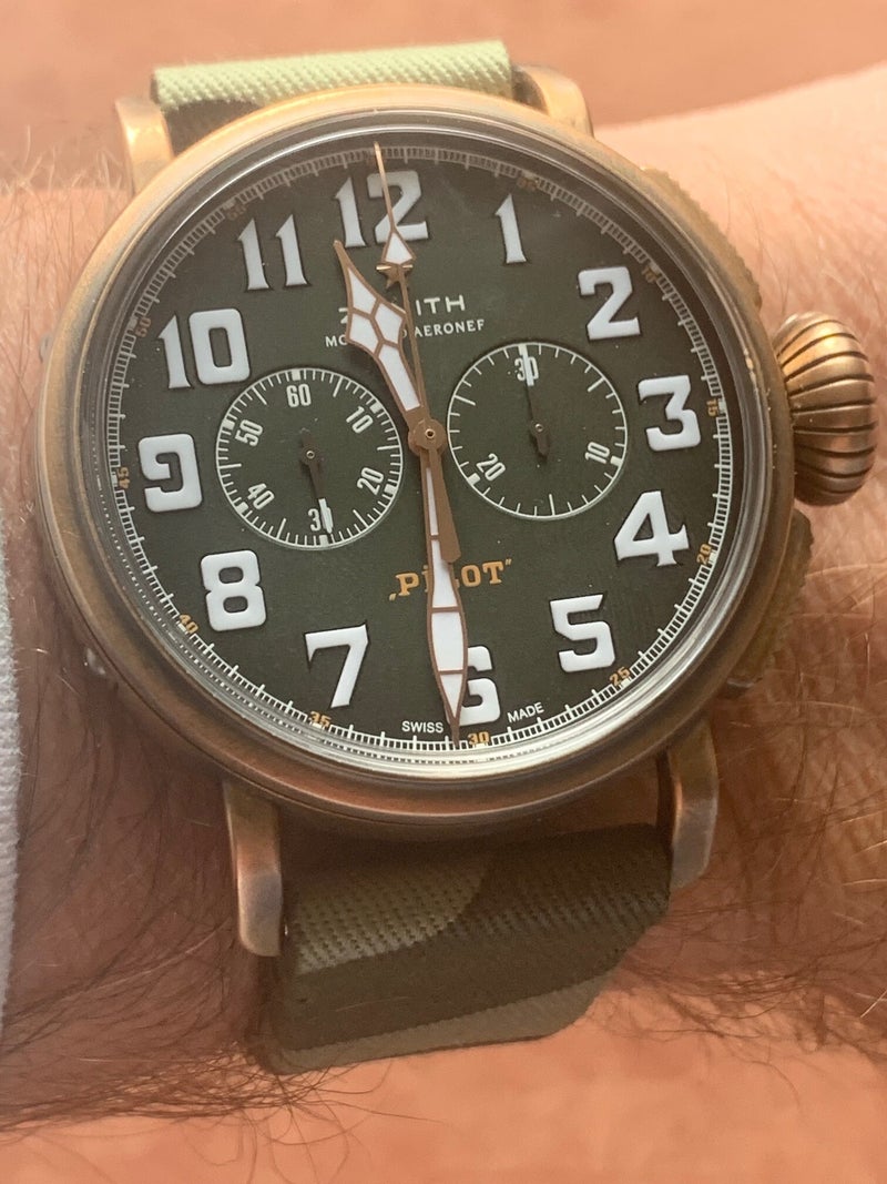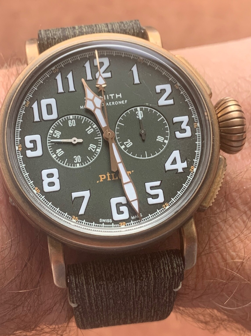 As for the bronze case itself, I’ve come across two completely different claims: one article said Zenith has treated the case to prevent patina development, while another stated that each watch will develop its own unique patina—which, after all, is the whole point of bronze watches, isn’t it? Personally, I hope mine will develop a nice patina over time.