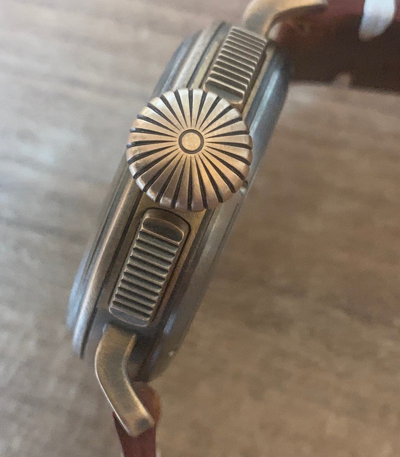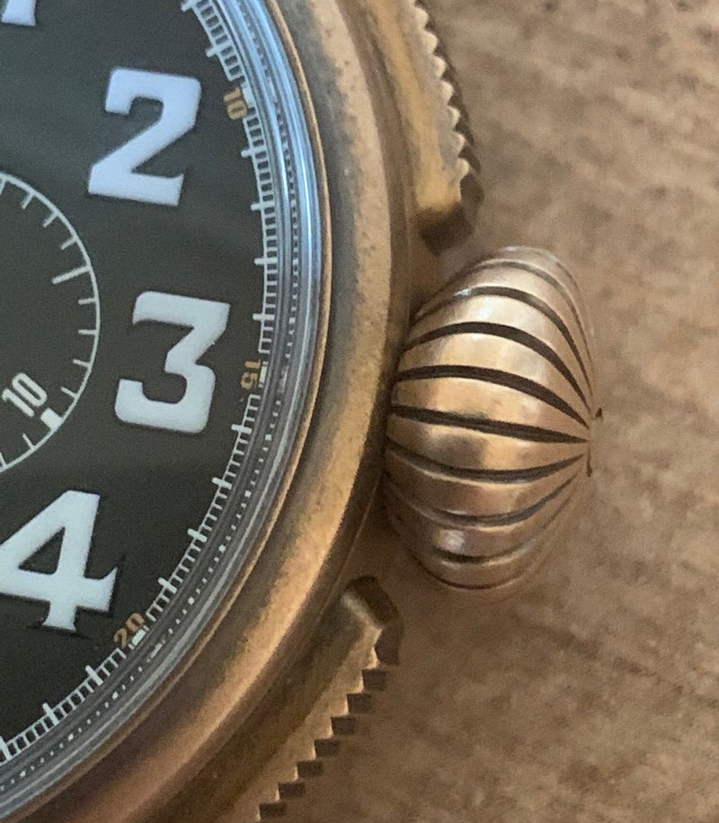 So, let's start with the basic facts. As mentioned, the watch has a bronze case, and its diameter is 45mm, excluding the crown and pushers. I’m sure this information—along with a photo showing the oversized crown—might suggest the watch is massive and almost unwearable. But the truth is quite the opposite!