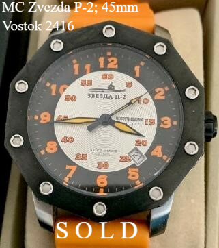 I have two of it's watches. First one is Zvezda P-2 diver watch with Vostok automatic movement 2416 and the second one is Aeronavigator alarm, which was already shown in alam/Poljot collection: