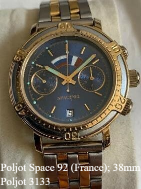 However, two other interesting chronograps are listed here. After 1992 Russia wanted to show to the rest of the world how "open" is the new Russia, and serious of international space flights to ex. Soviet space stations were organised. I have here two Poljot 3133 chronographs which were dedicated to those international flights. One was done with a German astronaut and one with French astronaut.